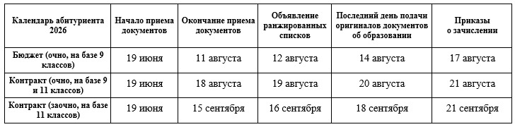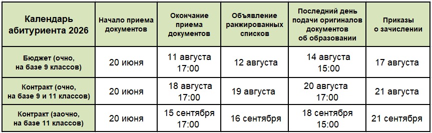 - Календарь поступления 2026